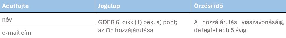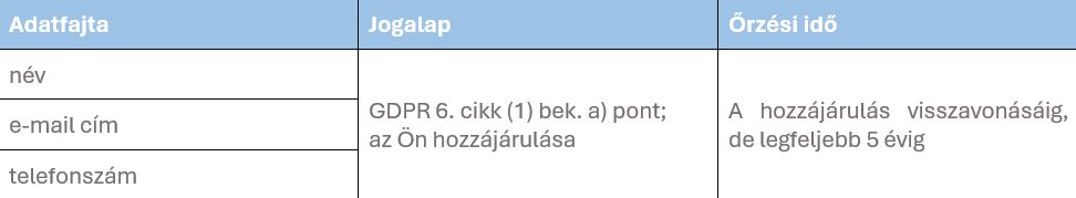 az Ön hozzájárulása A hozzájárulás visszavonásáig, de legfeljebb 5 évig